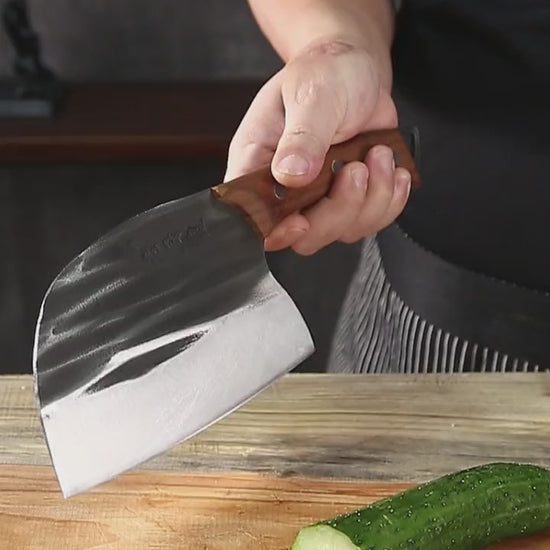 Heavy Duty Kitchen Cleaver Knife – Wider, heavier blade designed for cutting through meat and bone, plus chopping vegetables. Great for butchery tasks and heavy-duty kitchen work.